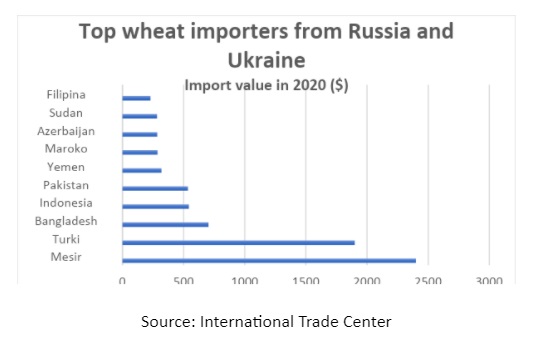 From the graph above, we can see that Russia and Ukraine are positioned to be the most crucial food suppliers for countries that are suffering from food insecurity, including Indonesia. Indonesia is among the largest wheat importers of Ukrainian wheat. Hence, we may expect some price increases and a scarcity of wheat from Ukraine in the country. However, we hope that the government may find an alternative solution in response to the issues.